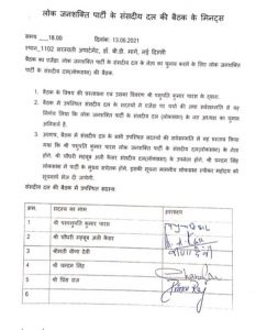 चिराग को लेकर पार्टी में जबरदस्त नाराजगी थी। पार्टी के विधायक तो पहले ही LJP का दामन छोड़ चुके थे, अब 5 सांसदों ने चिराग पासवान को अध्यक्ष समेत सभी पदों से हटा दिया है। रविवार देर शाम ही चली LJP सांसदों की बैठक में इस फैसले पर मुहर लग गई। पांचों सांसद आज चुनाव आयोग को भी इसकी जानकारी देने वाले हैं।
